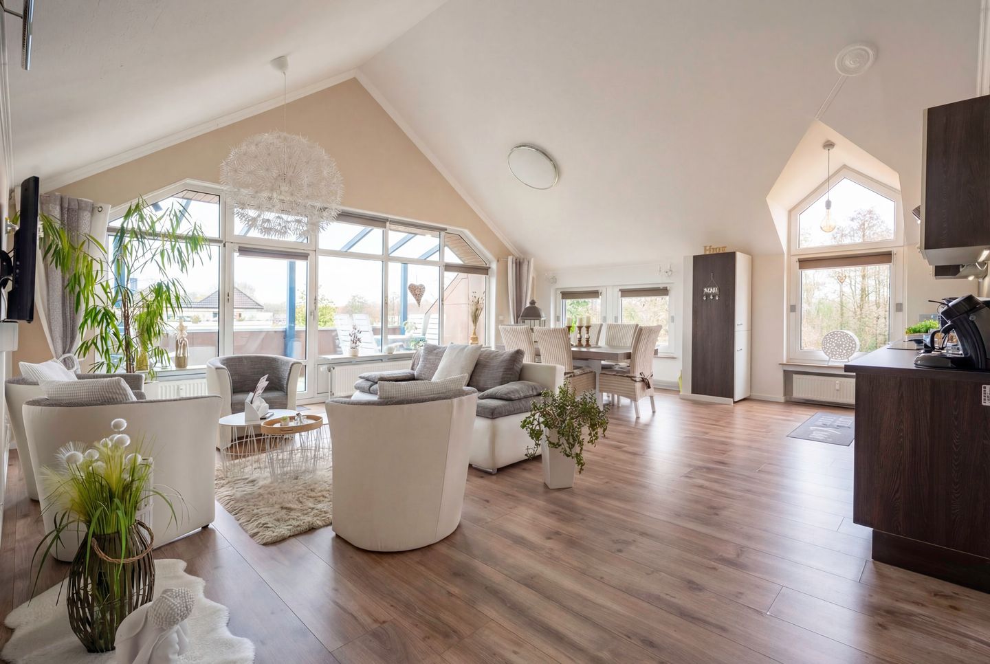 Dieses HELLO HOLIDAYS Penthouse Ammerblick ist ein heller, ruhiger Rückzugsort am Ortseingang von Bad Zwischenahn. Die hohen Decken, der luftige Wohnbereich und die vielen Fenster schaffen ein Gefühl von Großzügigkeit. Alles Wichtige ist fußläufig erreichbar, das Zwischenahner Meer nur wenige Minuten entfernt.