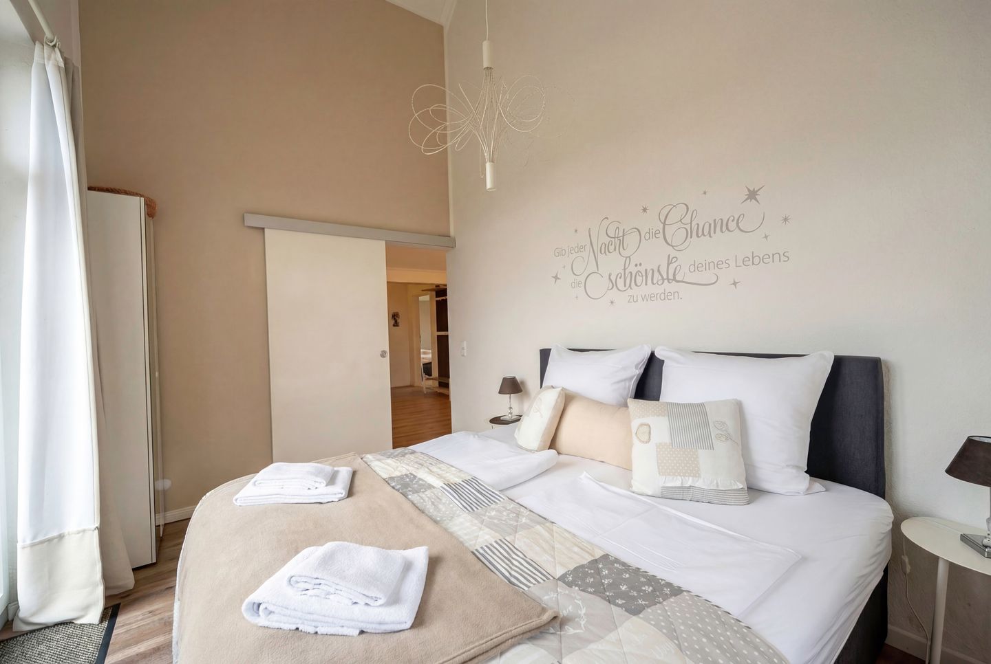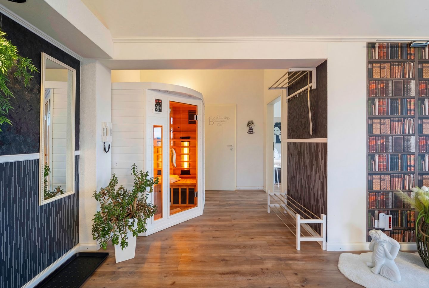 Auf rund 100 Quadratmetern bietet das Penthouse Platz für vier Personen, optional bis zu sechs. Zwei Schlafzimmer mit Boxspringbetten, ein modernes Bad plus Gäste-WC und ein großzügiger Wohnbereich sorgen für Komfort. Die Küche ist umfangreich ausgestattet, ein Waschtrockner ist vorhanden. Das Besondere: eine eigene Infrarotsauna und drei Balkone – einer am Wohnzimmer, zwei an den Schlafzimmern. Ein Parkplatz gehört zur Wohnung, weitere Parkmöglichkeiten gibt es direkt in der Nähe. Die Wohnung befindet sich im dritten Obergeschoss, ohne Fahrstuhl.