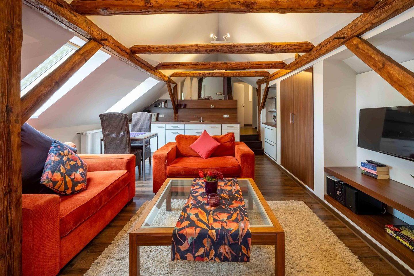 Die „Petit Superior“ ist ideal für Paare oder Alleinreisende, die eine besondere Unterkunft in zentraler Lage suchen. Trotz ihrer kompakten Größe strahlt die Wohnung eine einzigartige Gemütlichkeit aus, die sie zu etwas ganz Besonderem macht.