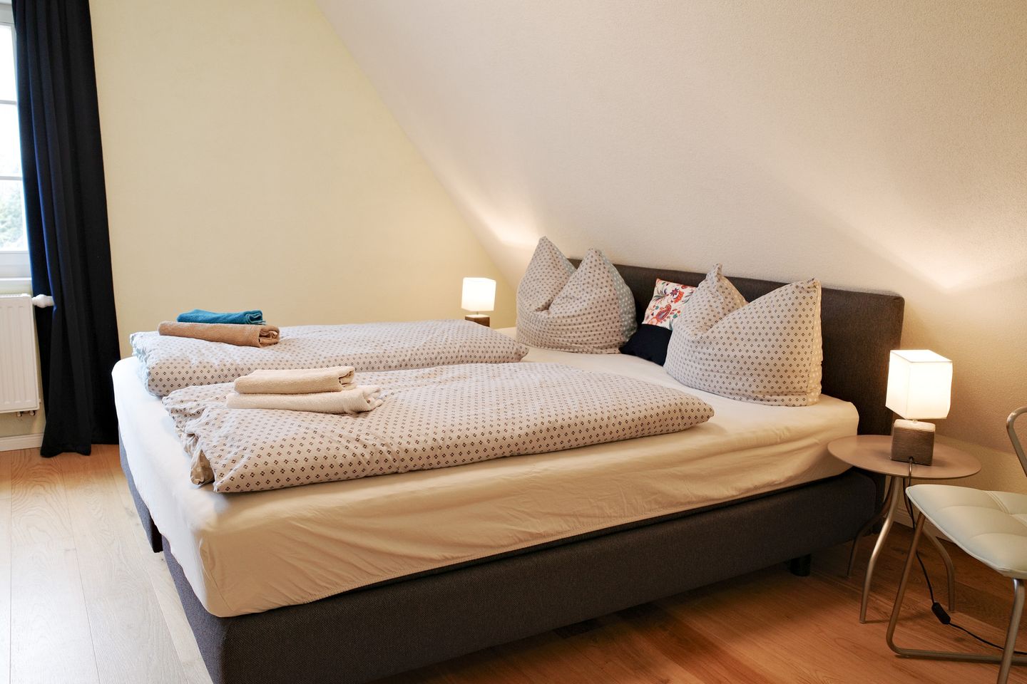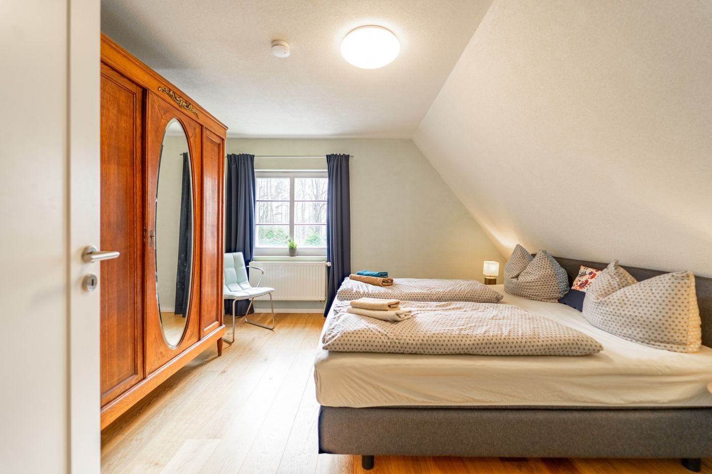 Im ersten Obergeschoss des alten Forsthauses liegt diese gemütliche Wohnung – ideal für Paare oder kleine Familien, die naturnah entspannen möchten, aber nicht auf Komfort verzichten wollen. Forsthaus Wohnung 2 bietet auf 70 m² Platz für bis zu 4 Personen – mit einem schönen Mix aus Holz, Wärme und Waldfeeling.