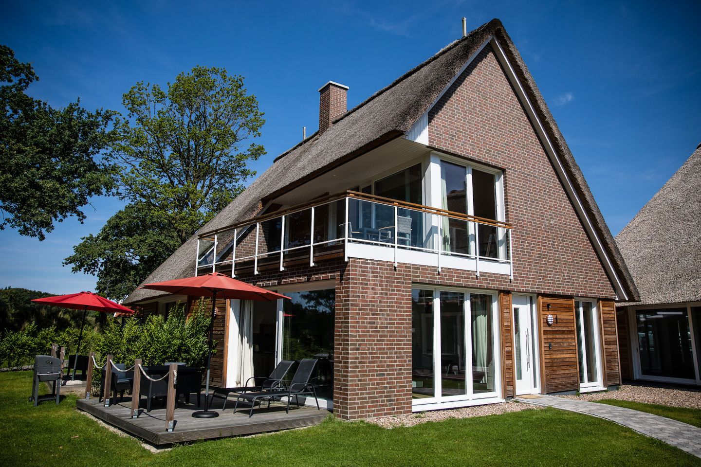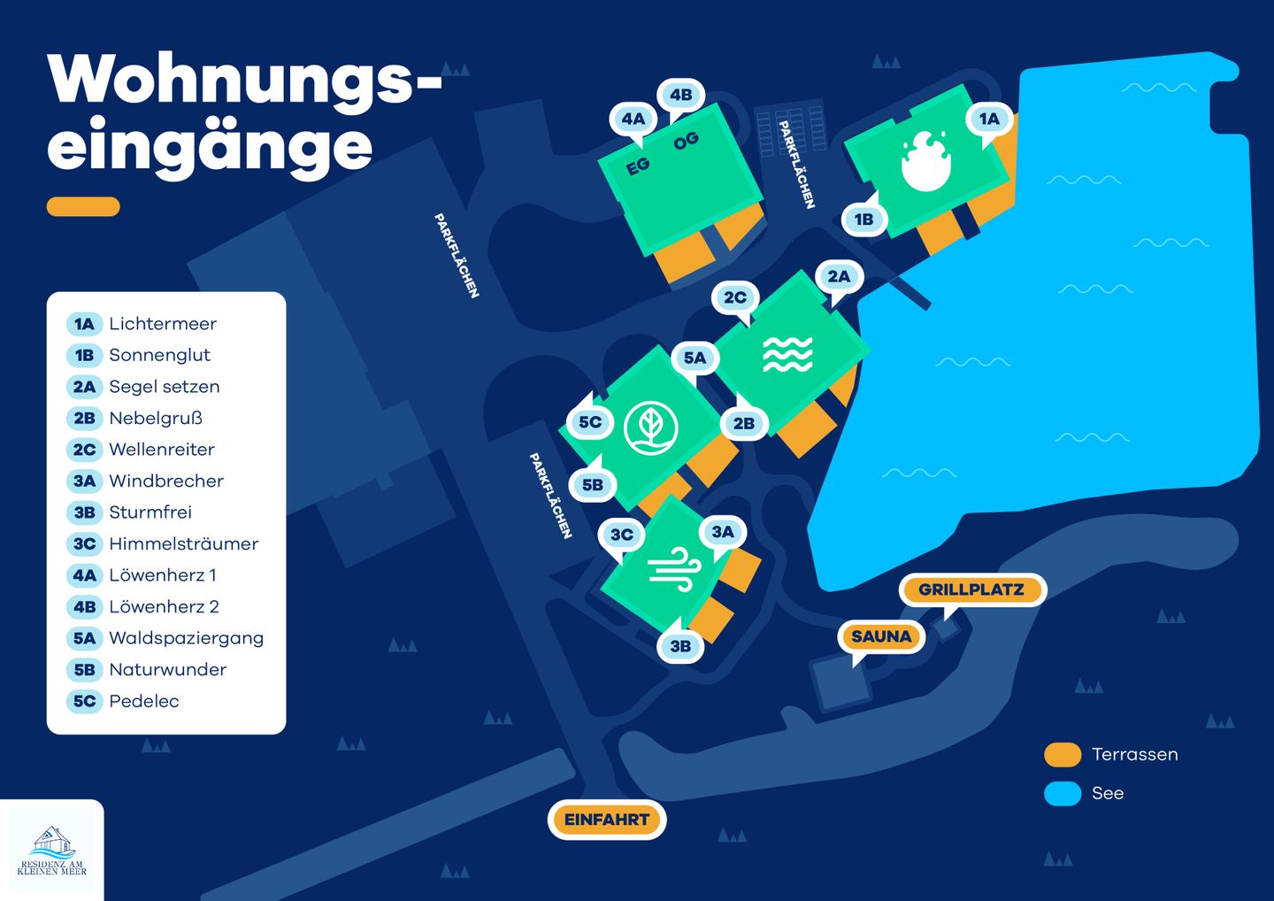 Willkommen in der Residenz am kleinen Meer, einer exklusiven Ferienanlage am Rande von Bad Zwischenahn. Unsere fünf reetgedeckten Häuser fügen sich harmonisch in die malerische Landschaft ein und umgeben einen privaten Natursee. Jedes Haus besteht aus drei stilvoll eingerichteten Wohneinheiten, die Platz für bis zu 6 Personen bieten. Genießen Sie modernsten Komfort, darunter Fußbodenheizung, hochwertige Boxspring-Betten, Sauna und kostenfreies WLAN. Die Anlage ist ideal für Familien, Paare und Gruppen, die Ruhe und Natur suchen.